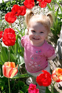 I have some beautiful tulips on our back patio...so we thought we should get a picture of our beautiful daughter among the beautiful tulips.